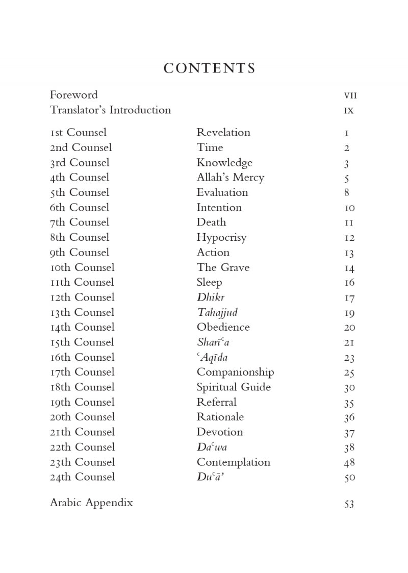 Dear Beloved Son is an excellent compilation of extremely valuable pieces of advice based not only on theory but on the practical experience and insight of Imam al-Ghazali. Since he presented his disciple with these pieces of advice at a stage in life where he had studied and excelled in all major sciences of Islam, it holds extra significance. He covers topics such as sincerity, knowledge, action, death, da’wah, hypocrisy, time, dhikr and Shari’ah, with delicacy and coherency, so that one is able to grasp clearly the multidimensional facets of a comprehensive Islam.