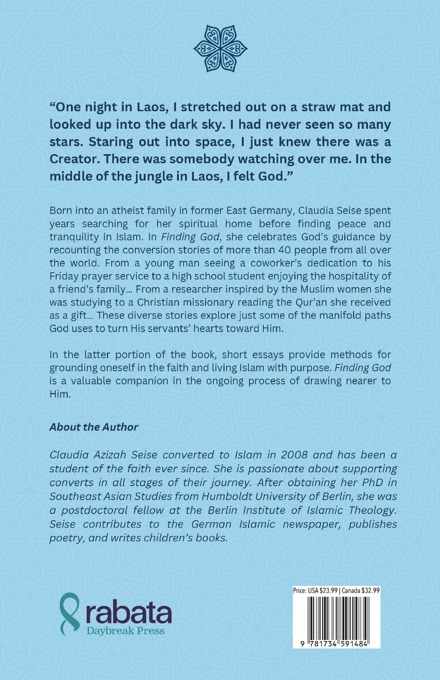 Born into an atheist family in former East Germany, Claudia Seise spent years searching for her spiritual home before finding peace and tranquility in Islam. In Finding God, she celebrates God's guidance by recounting the conversion stories of more than 40 people from all over the world. From a young man seeing a coworker's dedication to his Friday prayer service to a high school student enjoying the hospitality of a friend's family... From a researcher inspired by the Muslim women she was studying to a Christian missionary reading the Qur'an she received as a gift... These diverse stories explore just some of the manifold paths God uses to turn His servants' hearts toward Him.