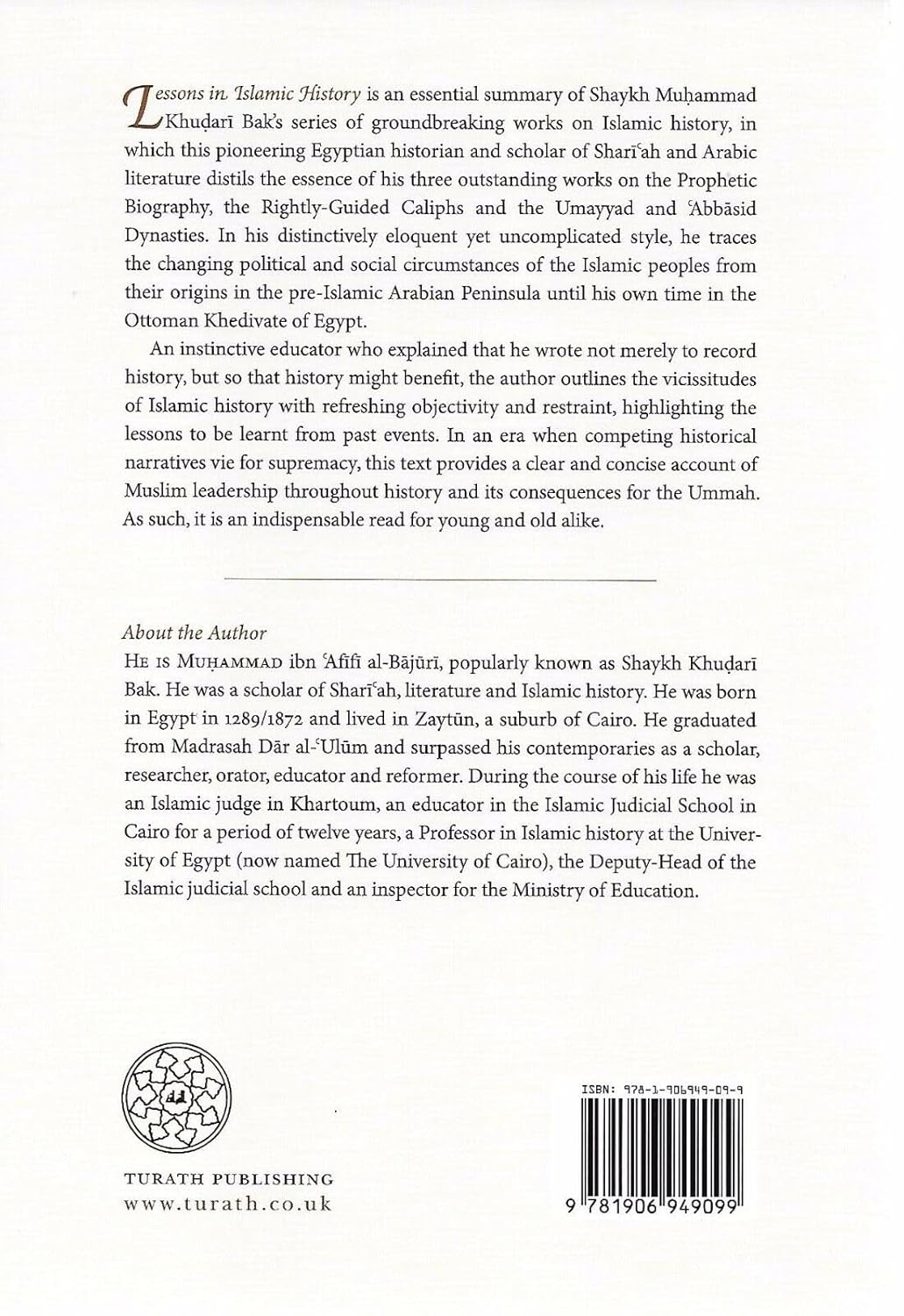 Lessons in Islamic History is an essential summary of Shaykh Muhammad Khudari Bak's series of groundbreaking works on Islamic history, in which this pioneering Egyptian historian and scholar of Shari'ah and Arabic literature distils the essence of his three outstanding works on the Prophetic Biography, the Rightly-Guided Caliphs and the Umayyad and 'Abbasid Dynasties.