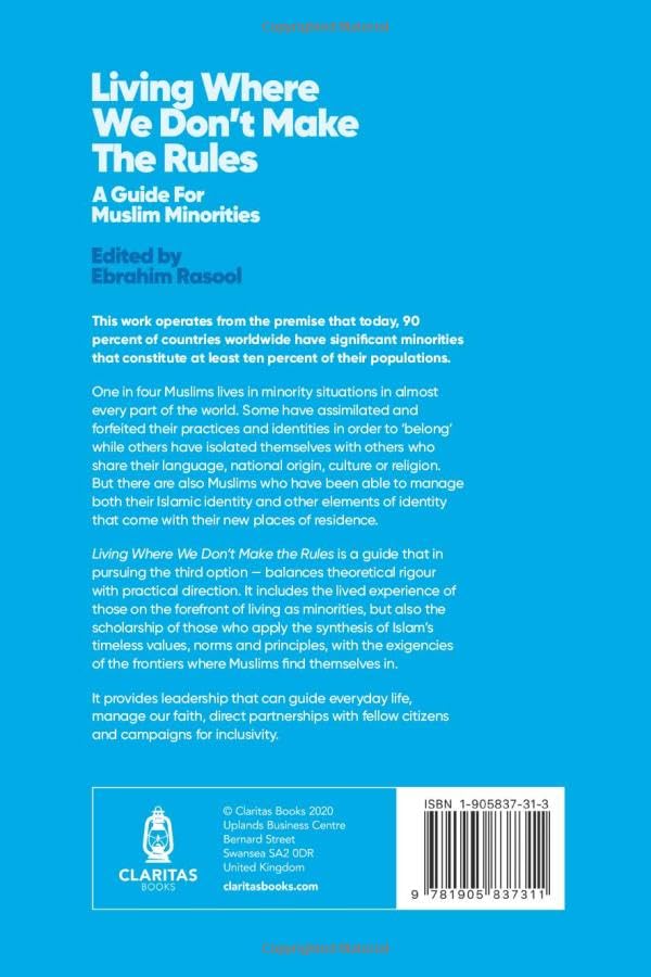 Living Where We Don’t Make the Rules is a guide that in pursuing the third option — balances theoretical rigour with practical direction. It includes the lived experience of those on the forefront of living as minorities, but also the scholarship of those who apply the synthesis of Islam’s timeless values, norms and principles, with the exigencies of the frontiers where Muslims find themselves in. It provides leadership that can guide everyday life, manage our faith, direct partnerships with fellow citizens and campaigns for inclusivity.