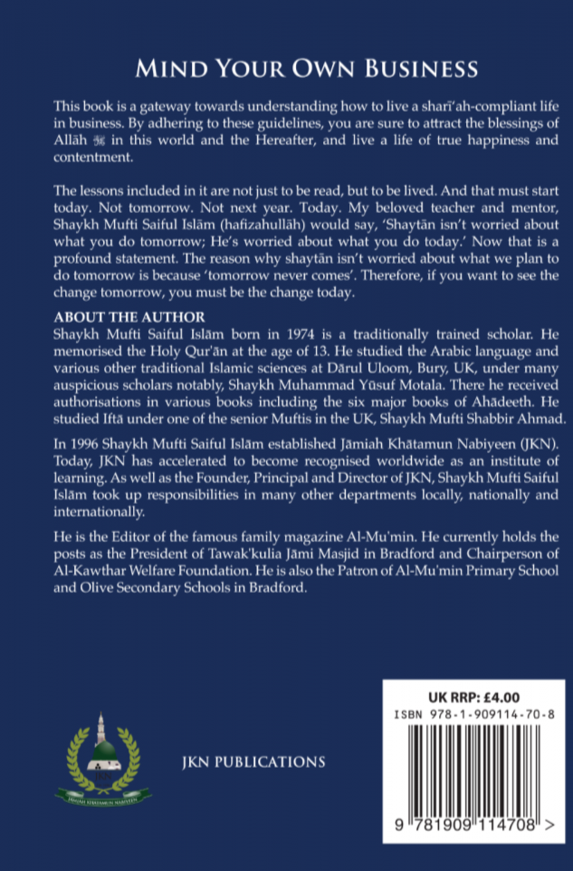 This book is a gateway towards understanding how to live a Shariah-compliant life in business. By adhering to these guidelines, you are sure to attract the blessings of Allah in this world and the Hereafter, and live a life of true happiness and contentment.
