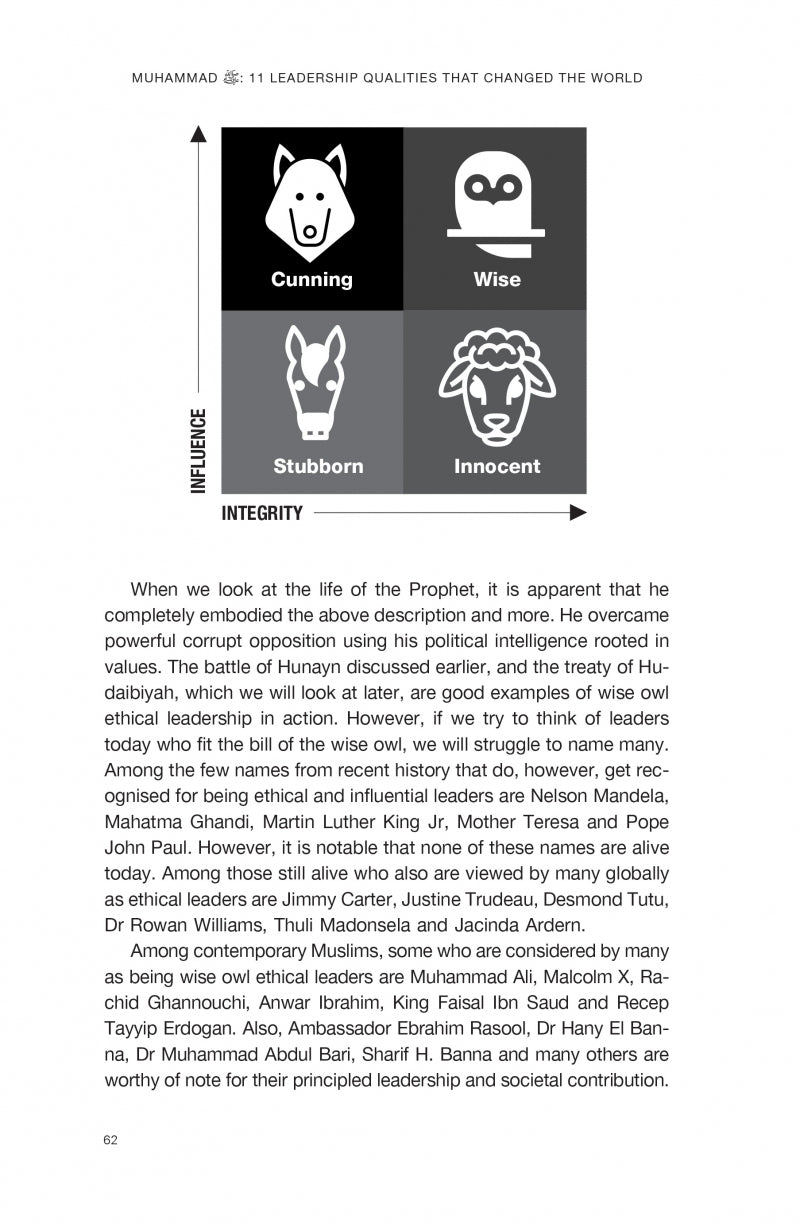 Each chapter on leadership qualities offers not only what the quality means and where it can be found in the life of the Prophet, but how one can develop those qualities within themselves as well.