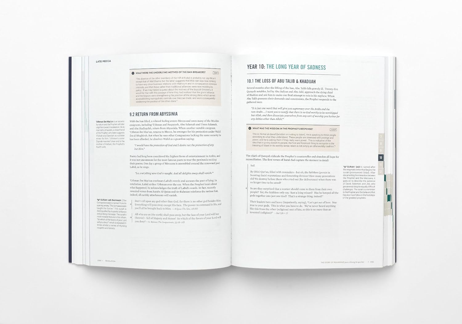 "Revelation: The Story of Muhammad" is a uniquely modern presentation of the life of the Prophet Muhammad s.a.w. Born out of a need for a fresh approach to classical texts, this book offers an intelligent presentation of a wide variety of scholarly viewpoints on the story of the Prophet and Qur'anic revelation. This biographical textbook brings the Qur'an into the forefront of the Sirah by weaving verses from the Qur'an into an authentic narrative of the Prophet’s life. It includes unique commentary points from 8 respected authors and scholars that allow readers the opportunity to understand and reflect upon varied topics related to the Sirah and ultimately draw their own conclusions. Clean and simple visual aids including maps, family trees, and diagrams, along with the author's helpful elaborations guide the reader through the story of Qur'anic revelation. Revelation is designed for readers who are interested in understanding the historical and scriptural context of the Qur'an and how it was revealed.