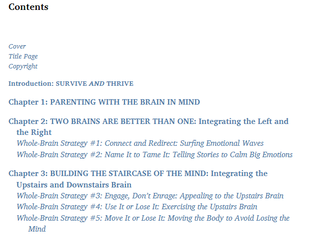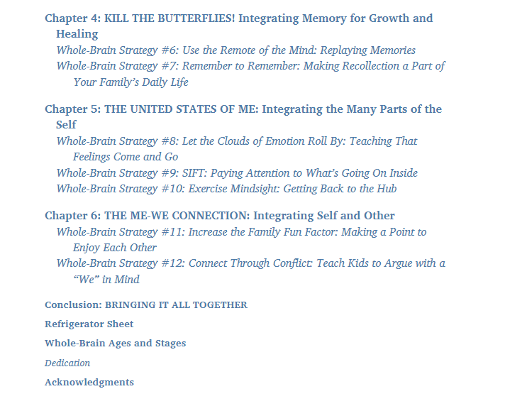 Complete with age-appropriate strategies for dealing with day-to-day struggles and illustrations that will help you explain these concepts to your child, The Whole-Brain Child shows you how to cultivate healthy emotional and intellectual development so that your children can lead balanced, meaningful, and connected lives.