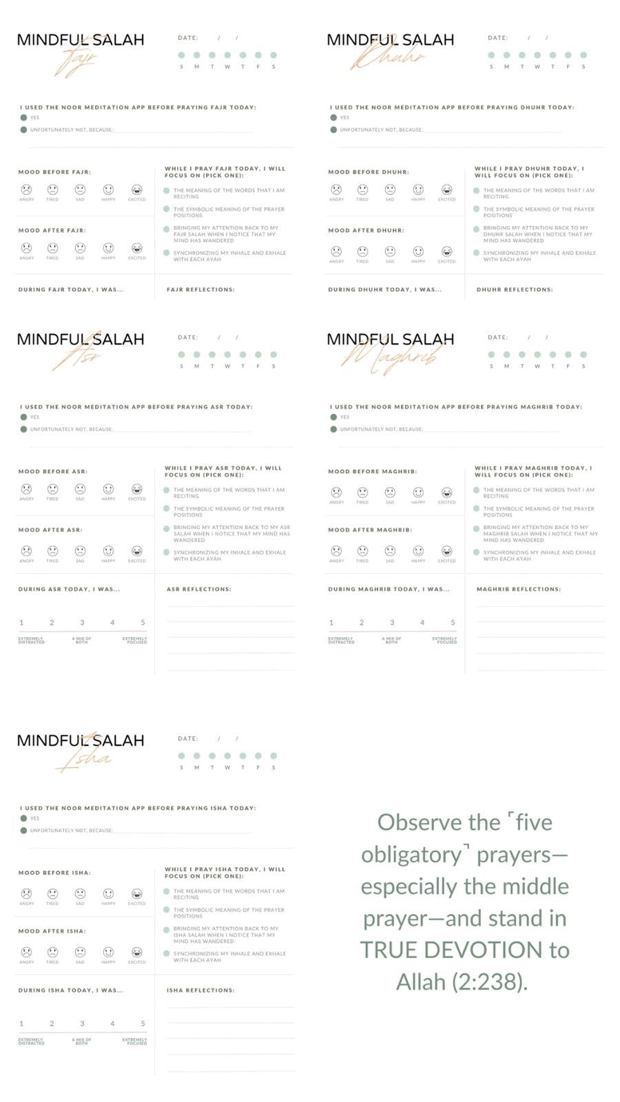 The uniquely designed Mindful Salah tracker is the perfect tool to help you gain complete devotion in your Salah (salat/namaz/prayer).